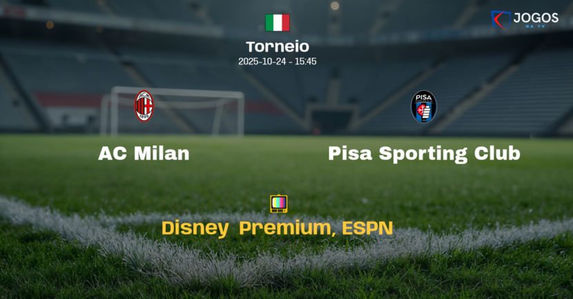 O jogo entre AC Milan e Pisa Sporting Club será transmitido na TV e internet por ESPN e Disney+ Premium, com início às 15h45, horário de Brasília.