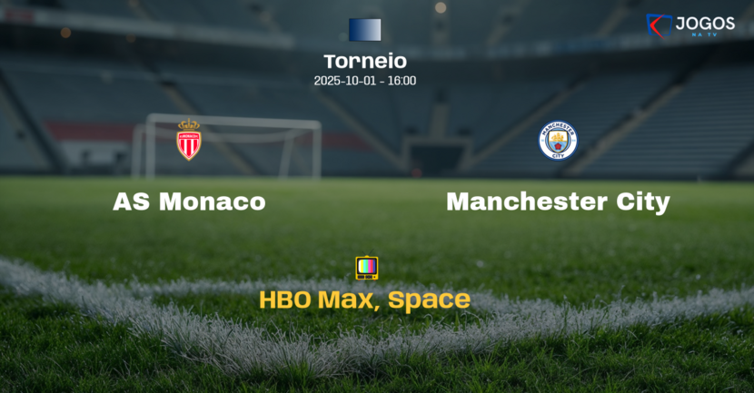 A partida entre AS Monaco e Manchester City será transmitida ao vivo exclusivamente pelos canais HBO Max e Space, às 16h desta quarta-feira.
