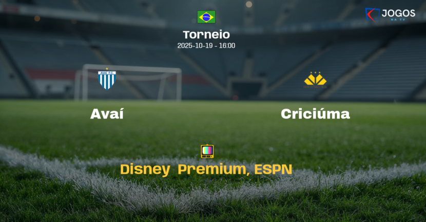 A partida entre Avaí e Criciúma terá exibição ao vivo pelos canais ESPN e streaming via Disney+ Premium, às 16h deste domingo.