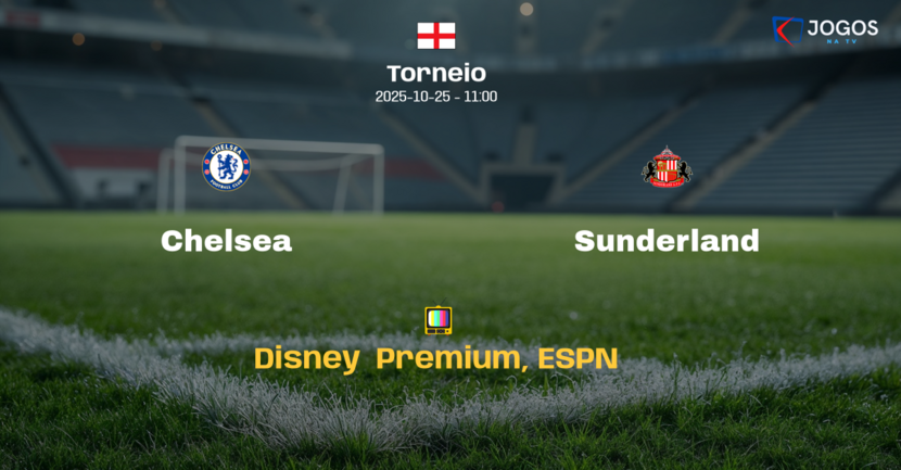 O confronto entre Chelsea e Sunderland terá transmissão ao vivo pela Disney+ Premium e pela ESPN a partir das 11h do sábado.