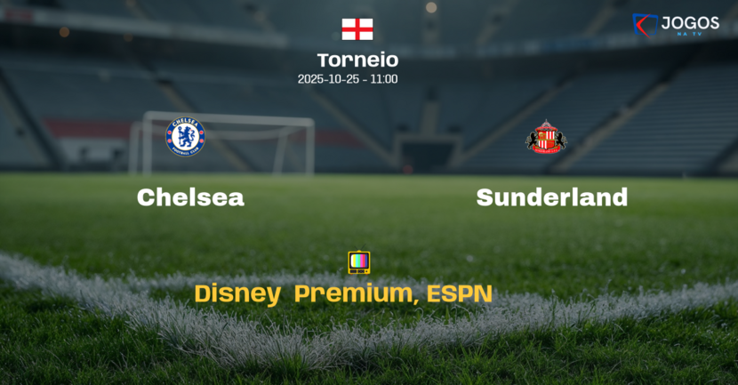 O confronto entre Chelsea e Sunderland terá transmissão ao vivo pelos canais ESPN e Disney+ Premium, com cobertura completa da Premier League.