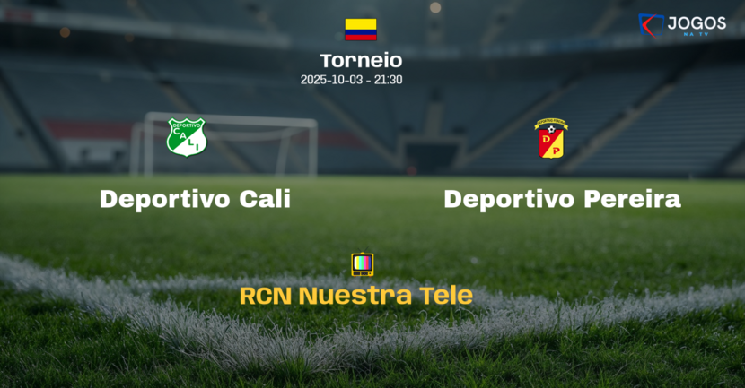 O confronto entre Deportivo Cali e Deportivo Pereira pelo Campeonato Colombiano será exibido ao vivo no canal RCN Nuestra Tele, a partir das 21h30.