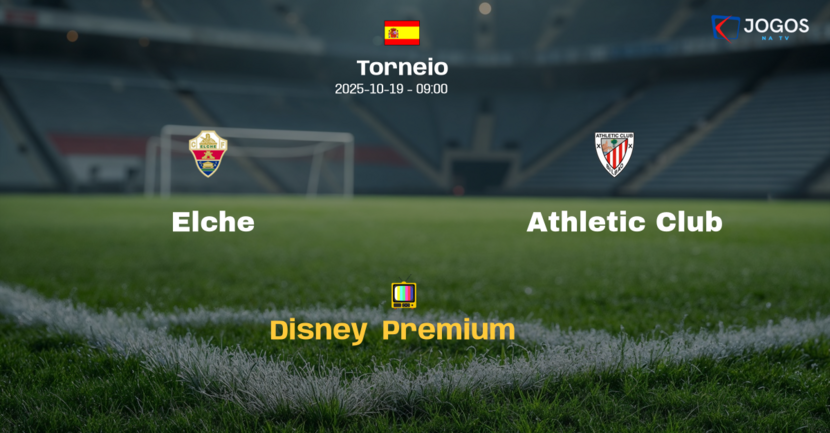 O duelo entre Elche e Athletic Club será transmitido ao vivo exclusivamente no streaming Disney+ Premium, neste domingo às 09h (horário de Brasília).