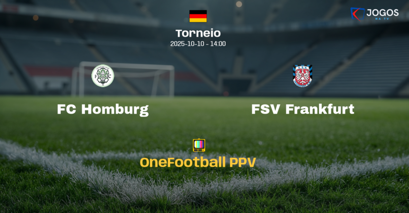 O confronto entre FC Homburg e FSV Frankfurt terá transmissão oficial pelo serviço OneFootball PPV, plataforma que exibe jogos da Regionalliga AO VIVO.