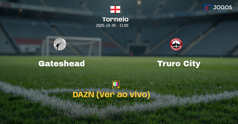 Gateshead e Truro City se enfrentam neste sábado, 25 de outubro, às 11h (horário de Brasília), pela National League 2025/26. O confronto promete agitar a rodada.