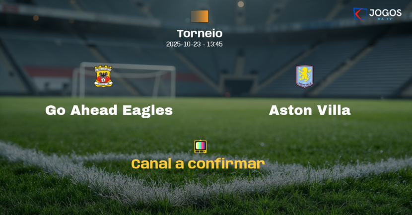 A partida entre Go Ahead Eagles e Aston Villa será transmitida ao vivo, com os canais oficiais ainda pendentes de confirmação pelas emissoras responsáveis.