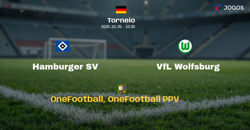 O confronto entre Hamburger SV e VfL Wolfsburg terá transmissão ao vivo pelos canais OneFootball e OneFootball PPV, via streaming online.