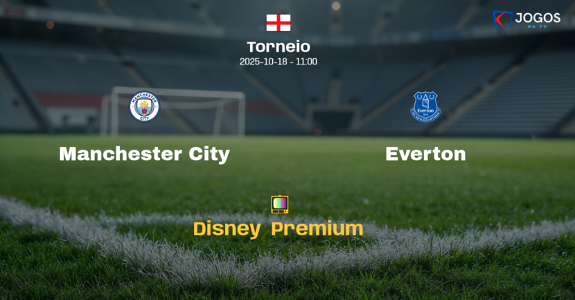 O confronto entre Manchester City e Everton será transmitido ao vivo, com exclusividade, através da plataforma de streaming Disney+ Premium neste sábado.
