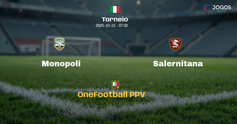 A partida entre Monopoli e Salernitana será transmitida com exclusividade pela plataforma OneFootball PPV, neste domingo, a partir das 07h30 (horário de Brasília).