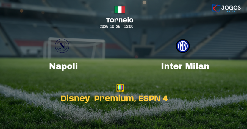 O clássico entre Napoli e Inter Milan terá transmissão exclusiva pelos canais ESPN 4 na TV fechada e no streaming Disney+ Premium.