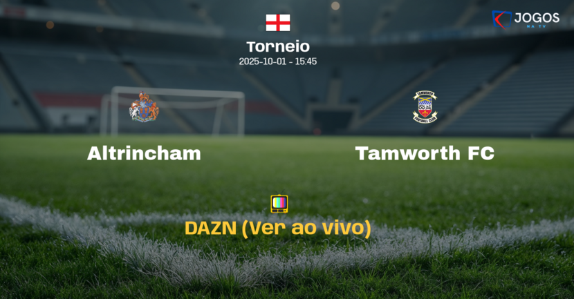A partida entre Altrincham x Tamworth FC terá transmissão exclusiva da plataforma de streaming DAZN, com início às 15h45 no horário de Brasília.