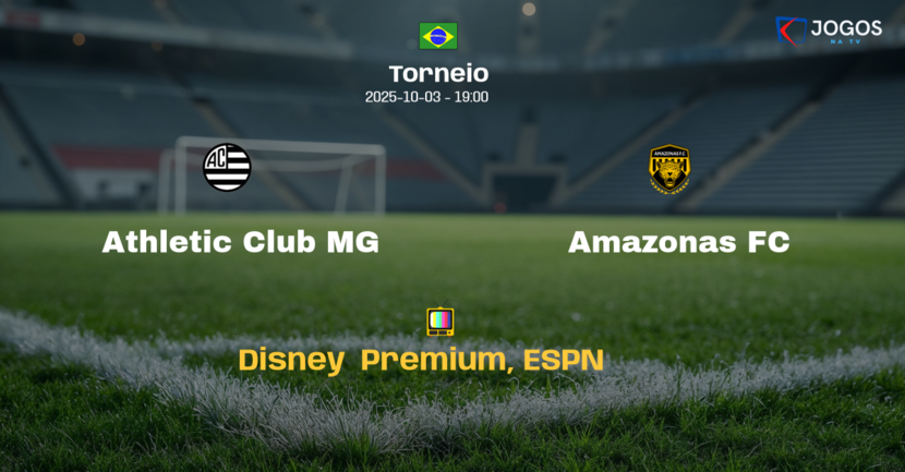 O duelo entre Athletic Club MG e Amazonas FC terá transmissão ao vivo pela ESPN e Disney+ Premium, nesta quinta-feira às 19h.