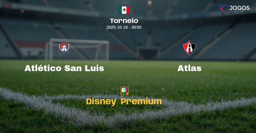 O duelo entre Atlético San Luis e Atlas será transmitido exclusivamente na plataforma Disney+ Premium, com início marcado para 00h, horário de Brasília.