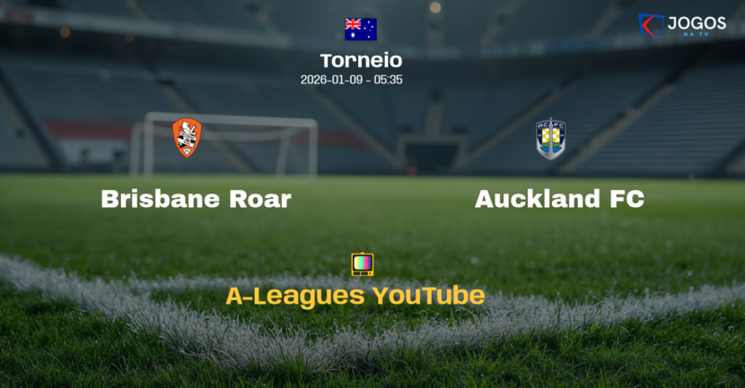 O confronto entre Brisbane Roar e Auckland FC terá transmissão ao vivo e gratuita pelo canal oficial A-Leagues YouTube, a partir das 05h35.