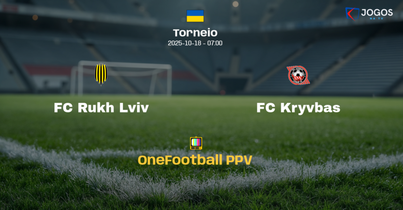 O jogo entre FC Rukh Lviv e FC Kryvbas será transmitido ao vivo pelo serviço OneFootball PPV, com início às 07h deste sábado.