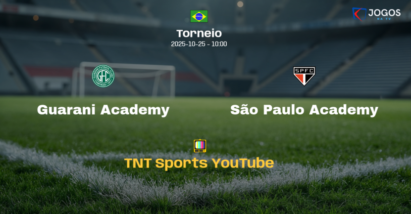 O confronto entre Guarani Academy e São Paulo Academy será transmitido ao vivo pelo canal TNT Sports no YouTube, de forma gratuita.
