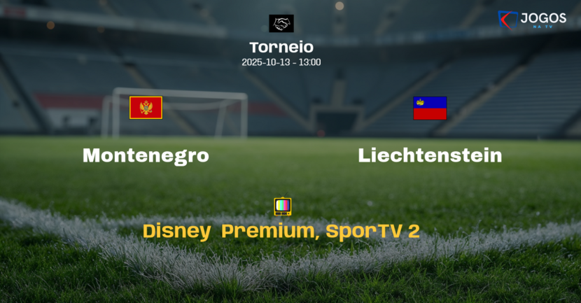 A partida entre Montenegro e Liechtenstein terá transmissão ao vivo pelos canais SporTV 2 e pela plataforma de streaming Disney+ Premium.