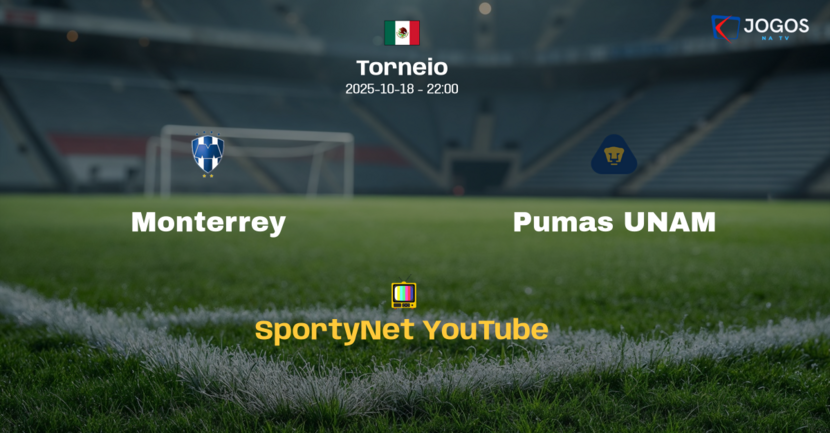 O torcedor poderá assistir ao vivo a partida entre Monterrey e Pumas UNAM com exclusividade no canal SportyNet pelo YouTube.