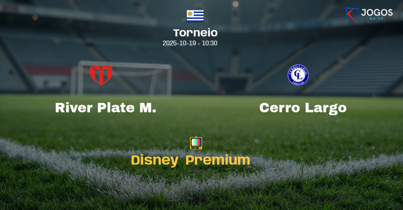 O confronto entre River Plate M. e Cerro Largo terá transmissão exclusiva pela plataforma Disney+ Premium, com início às 10h30, horário de Brasília.