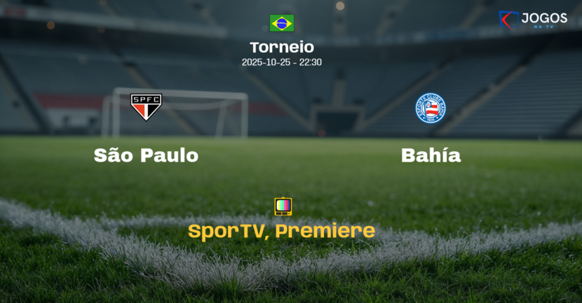 O jogo São Paulo x Bahía terá transmissão ao vivo no SporTV e Premiere, com início marcado para as 22h30 deste sábado.