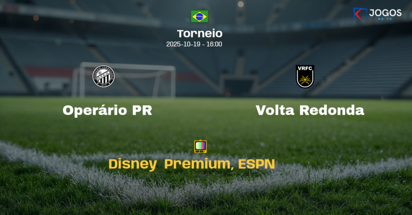 A partida entre Operário PR e Volta Redonda será transmitida ao vivo pelo streaming Disney+ Premium e pelo canal ESPN na TV por assinatura.