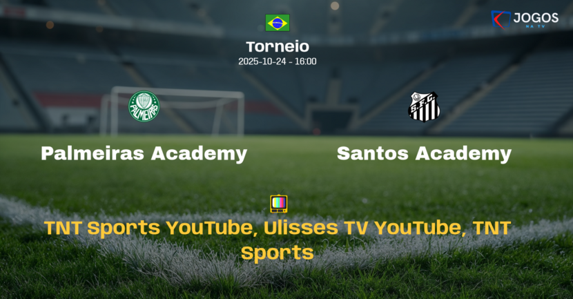 O clássico entre Palmeiras Academy e Santos Academy será transmitido ao vivo em três plataformas: TNT Sports no YouTube, Ulisses TV e canal TNT Sports.