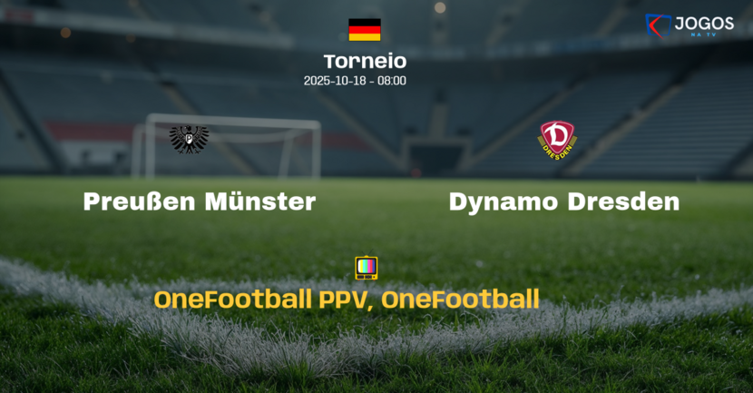 O confronto entre Preußen Münster e Dynamo Dresden será transmitido ao vivo pelo OneFootball PPV e também pela plataforma online OneFootball.