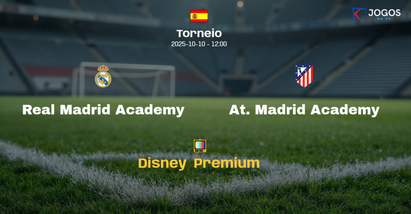 A partida entre Real Madrid Academy e At. Madrid Academy será transmitida com exclusividade pela plataforma Disney+ Premium, com sinal ao vivo para assinantes.