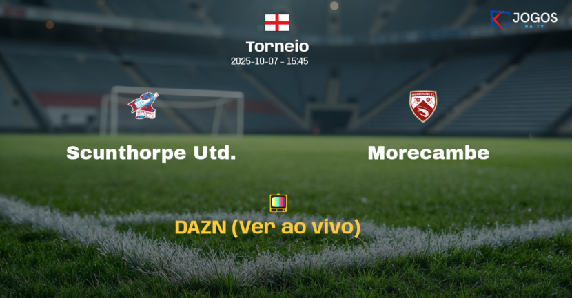 O jogo entre Scunthorpe Utd. e Morecambe será transmitido ao vivo exclusivamente pelo streaming DAZN, com acesso disponível para assinantes do serviço.