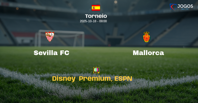 A partida entre Sevilla e Mallorca terá transmissão ao vivo pelos canais Disney+ Premium e ESPN, com início marcado para as 9h da manhã.