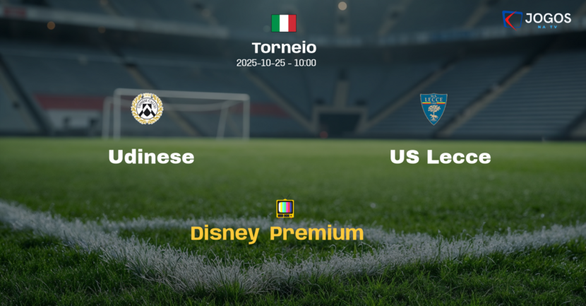 A partida entre Udinese e US Lecce terá transmissão ao vivo exclusiva pelo serviço de streaming Disney+ Premium, neste sábado às 10h da manhã.